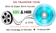 We can transfer your precious memories from any of your old media: 8mm reels, 8mm tapes, Digital tape and VHS