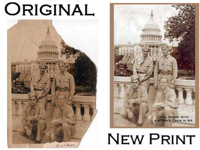 We can print any size you want of your original and prices vary according to the extent of the damage to the original photo. We usually charge $10 per hour for repair and then make new prints for $15 or less.
